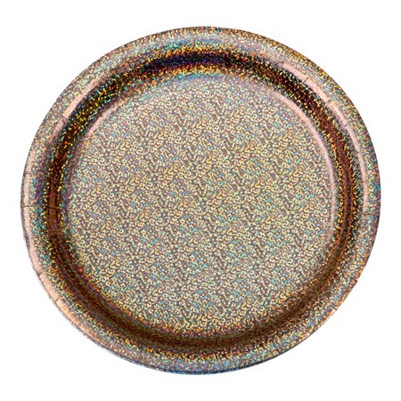 Kimaltava ruusukultainen hologrammi lautanen. 8kpl. Halkaisija 23 cm.