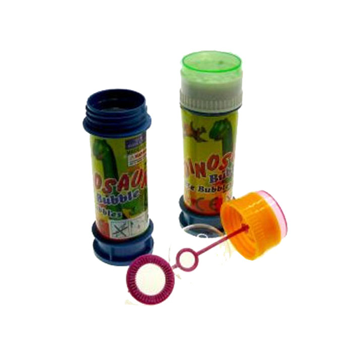 Saippuakuplapullo dinosaurusten tai merenelävien kuvilla.