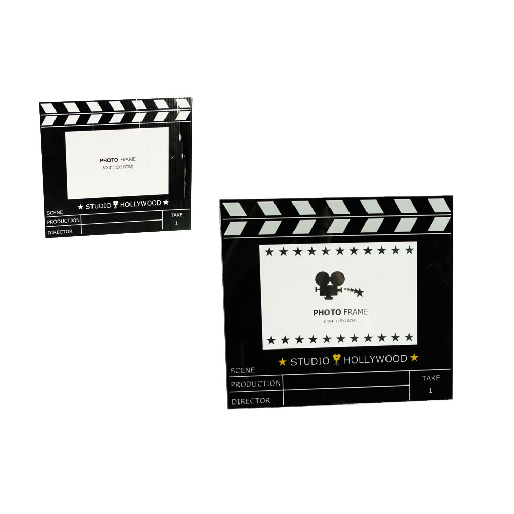 Lasinen valokuvakehys 15 x10cm kuvalle. Ohjaajan klaffitaulu.