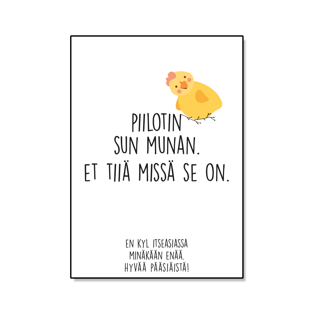 Johonki mää sen laitoin. Ehkä se löytyy ensipääsiäisenä? Koko: A6 (105mm X 148mm)